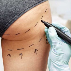 - Manchmal wird die Fettabsaugung mit der Entfernung der verbleibenden losen Haut kombiniert nachdem das Fett entfernt wurde.